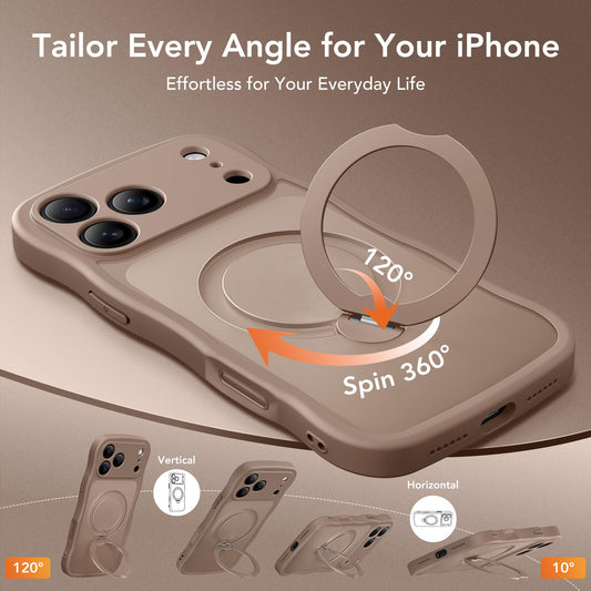 for iPhone 17 Pro Max Case for Women,[Compatible with Magsafe][360° Spin Magnetic Stand][Cute Wave Edge][Military-Grade Protection]Translucent Matte Phone Case for iPhone 17Pro Max,Withered Brown