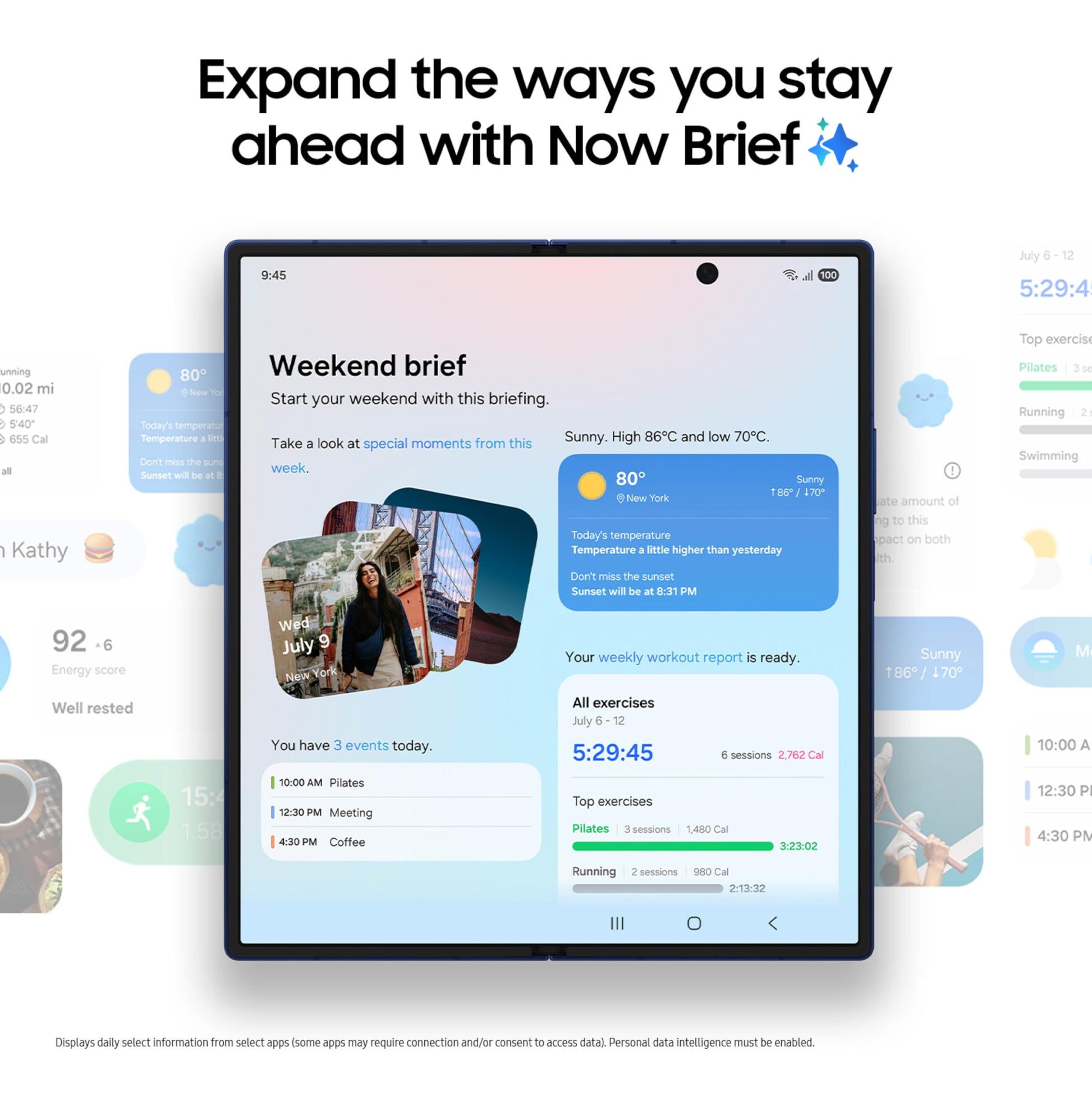 - EXPAND THE WAYS YOU STAY AHEAD: With Galaxy Z Fold7, you get to decide how to stay ahead. See your daily briefings at a glance on the cover screen, or unfold your phone for an expansive view.